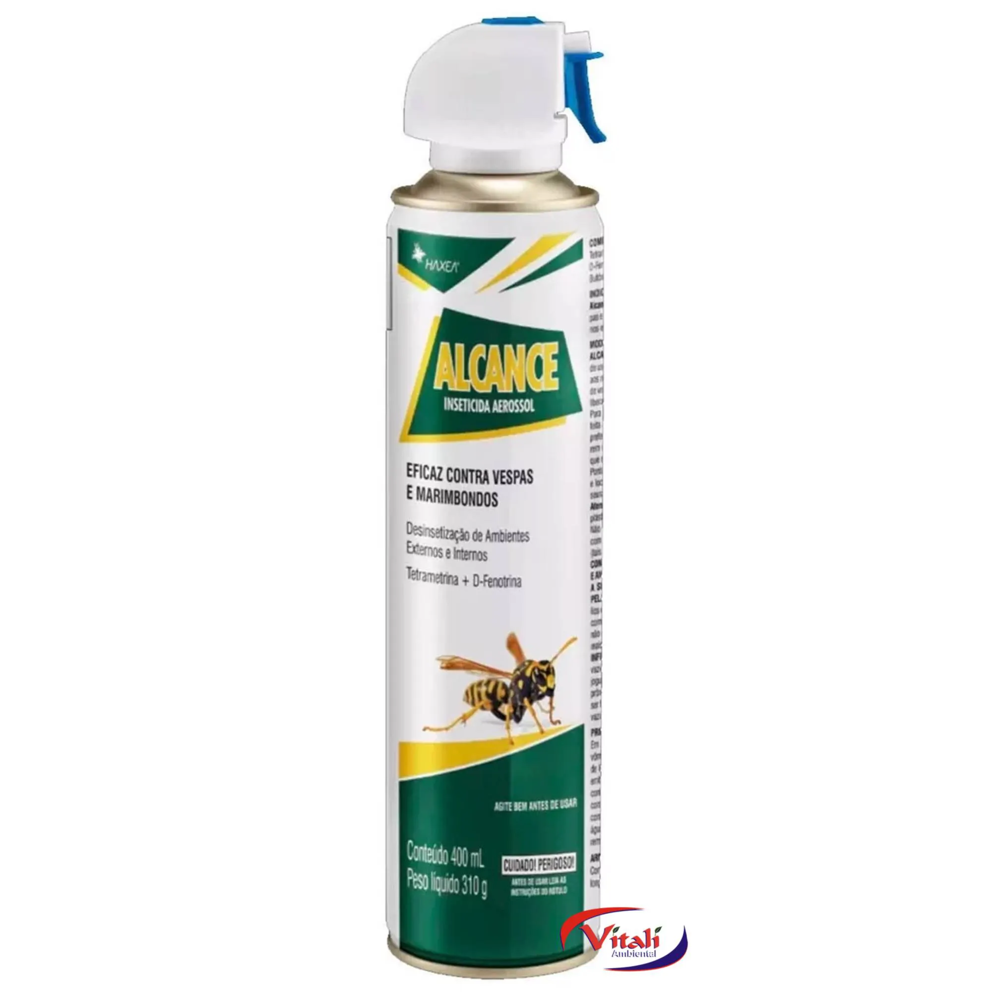 O Alcance Aerosol 400ml é um inseticida de alta potência formulado para o combate eficaz de vespas, marimbondos e aranhas. Possui uma válvula especial que libera um jato de longo alcance (até 5 metros), garantindo segurança e praticidade no uso em ambientes internos e externos, como telhados e jardins.