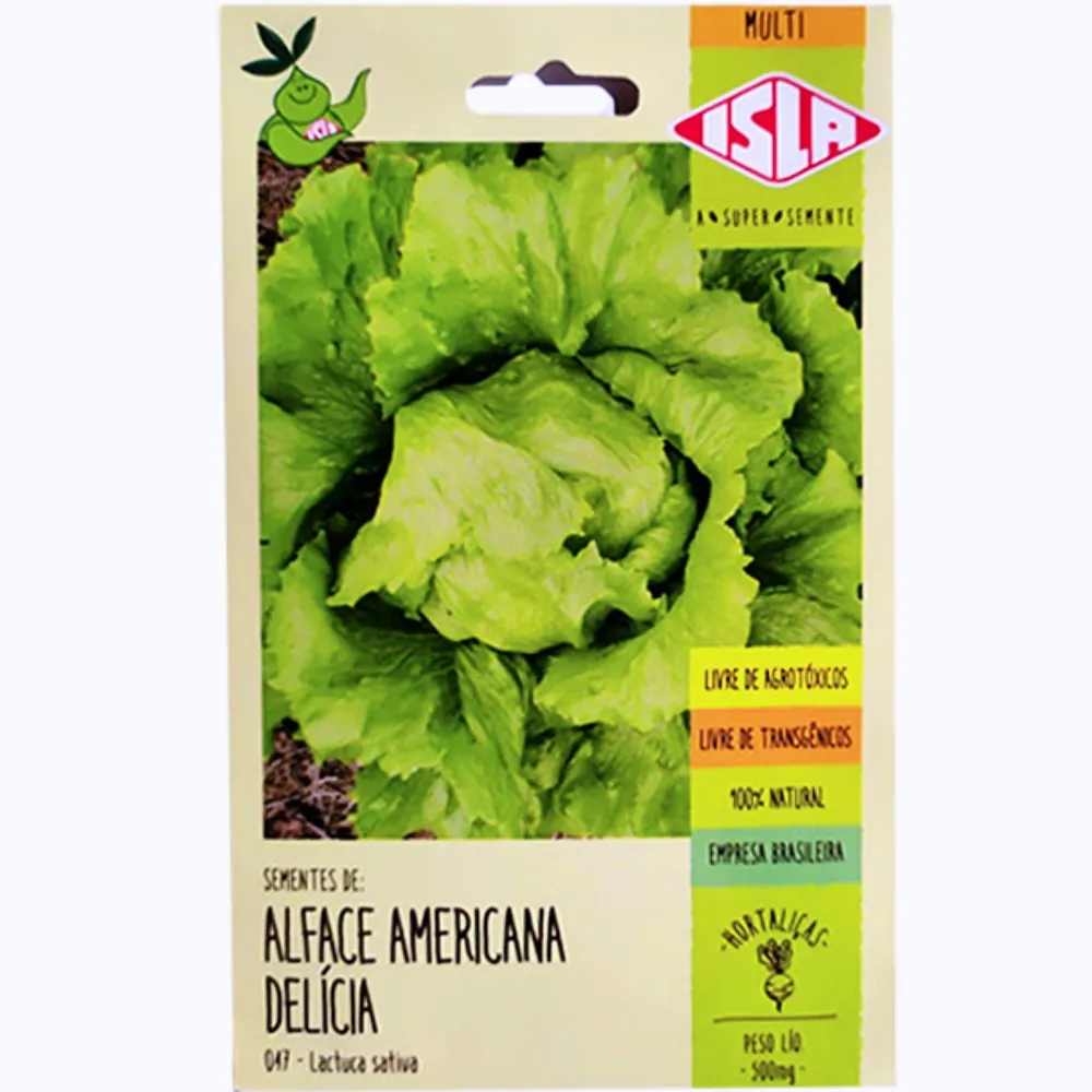 A Alface Americana Delícia é uma cultivar de grande porte, com excelentes folhas crocantes verde-claras e cabeça semi-compacta, ideal para verões quentes. Altamente precoce, essa variedade (frequentemente comercializada pela ISLA) tem ótimo desempenho em altas temperaturas, sendo resistente ao pendoamento precoce e à queima da saia.