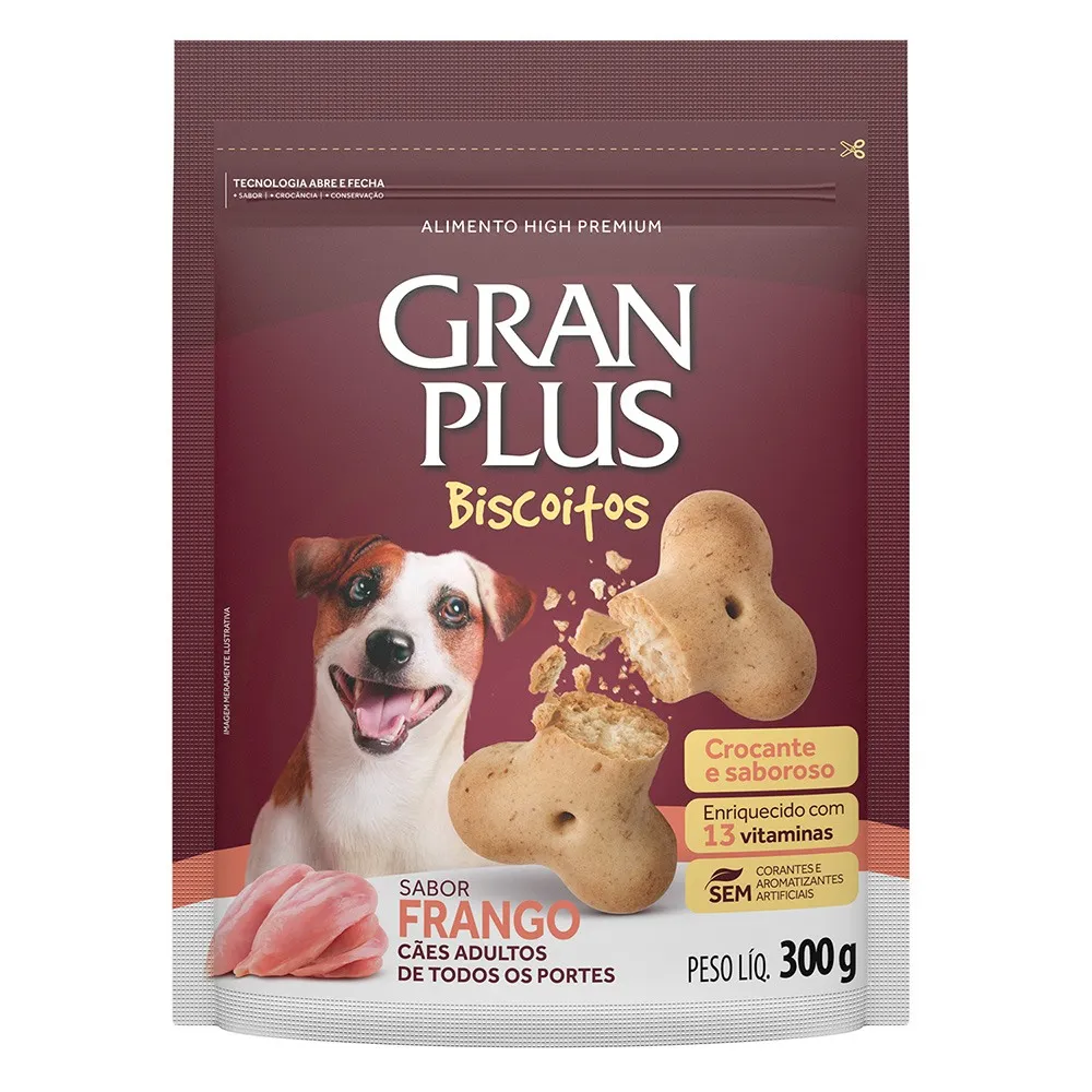 Preparados com ingredientes cuidadosamente selecionados e pensados na saúde dos nossos pets, os biscoitos GranPlus para cães oferecem um sabor irresistível e uma consistência que deixa nossos amigos de quatro patas animados e sempre desejando mais.