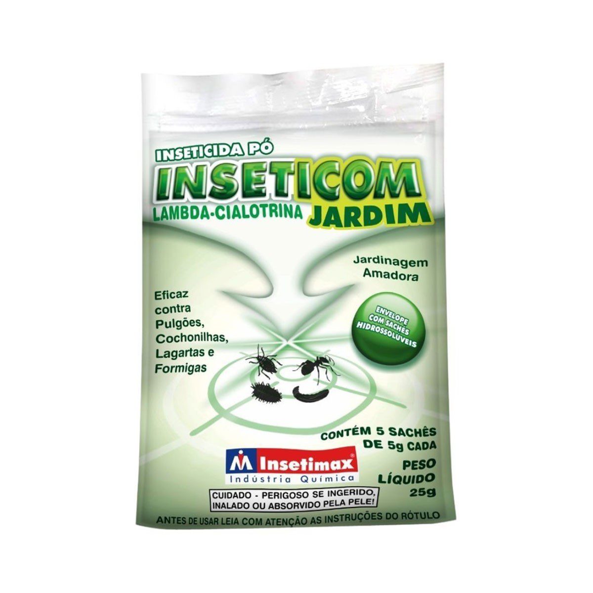 O Inseticida Inseticom Jardim Insetimax (25g) é um inseticida em pó solúvel (ou pó molhável em sachês hidrossolúveis), à base de Lambda-Cialotrina (10%), eficaz contra pulgões, cochonilhas, lagartas, formigas, moscas, mosquitos, escorpiões e besouros em jardins amadores. Sua formulação garante um efeito prolongado e é ideal para plantas ornamentais.