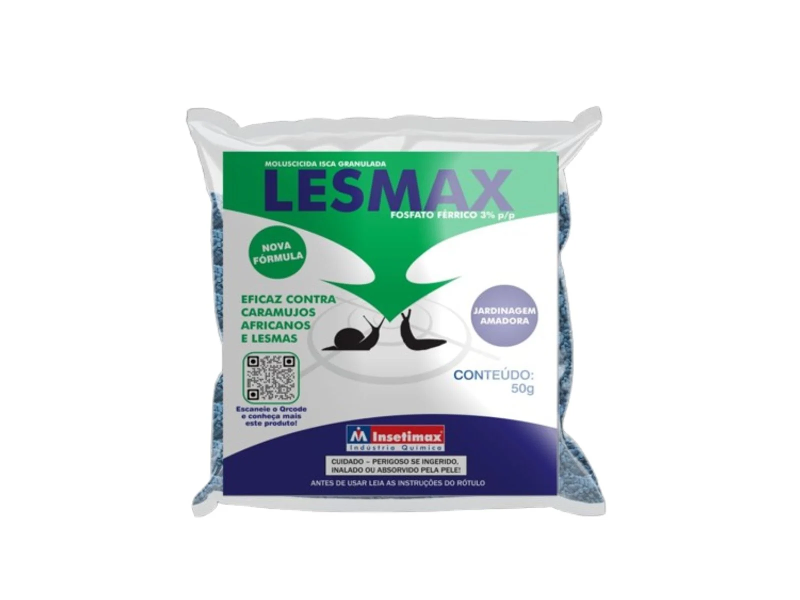 O Lesmicida Lesmax Insetimax (50g) é uma isca granulada atrativa, desenvolvida para o controle de lesmas (Sarasinula linguaeformis) e caramujos, incluindo o africano (Achatina fulica). É indicado para uso em hortas, jardins, vasos e plantas ornamentais, com aplicação direta no solo. Sua fórmula oferece alta resistência à umidade e alta eficiência no combate dessas pragas.