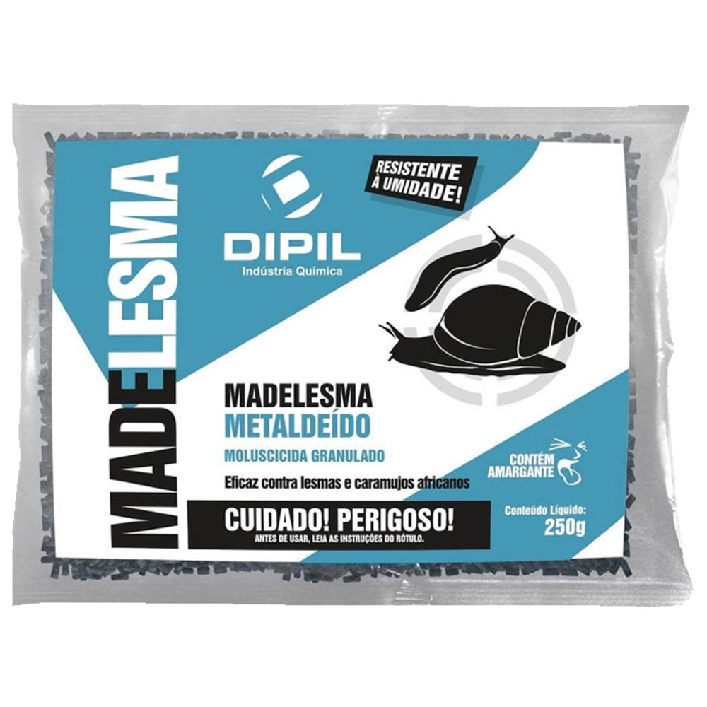O Madelesma 250g da Dipil é uma isca granulada moluscicida, resistente à umidade, ideal para o combate de lesmas e caramujos africanos em jardins, hortas e plantações. Com princípio ativo à base de Metaldeído (3% a 5%), age por ingestão e contato, desidratando e eliminando a praga de forma rápida. Sua aplicação é recomendada à noite, espalhando os grânulos sobre o solo, sem formar montes.