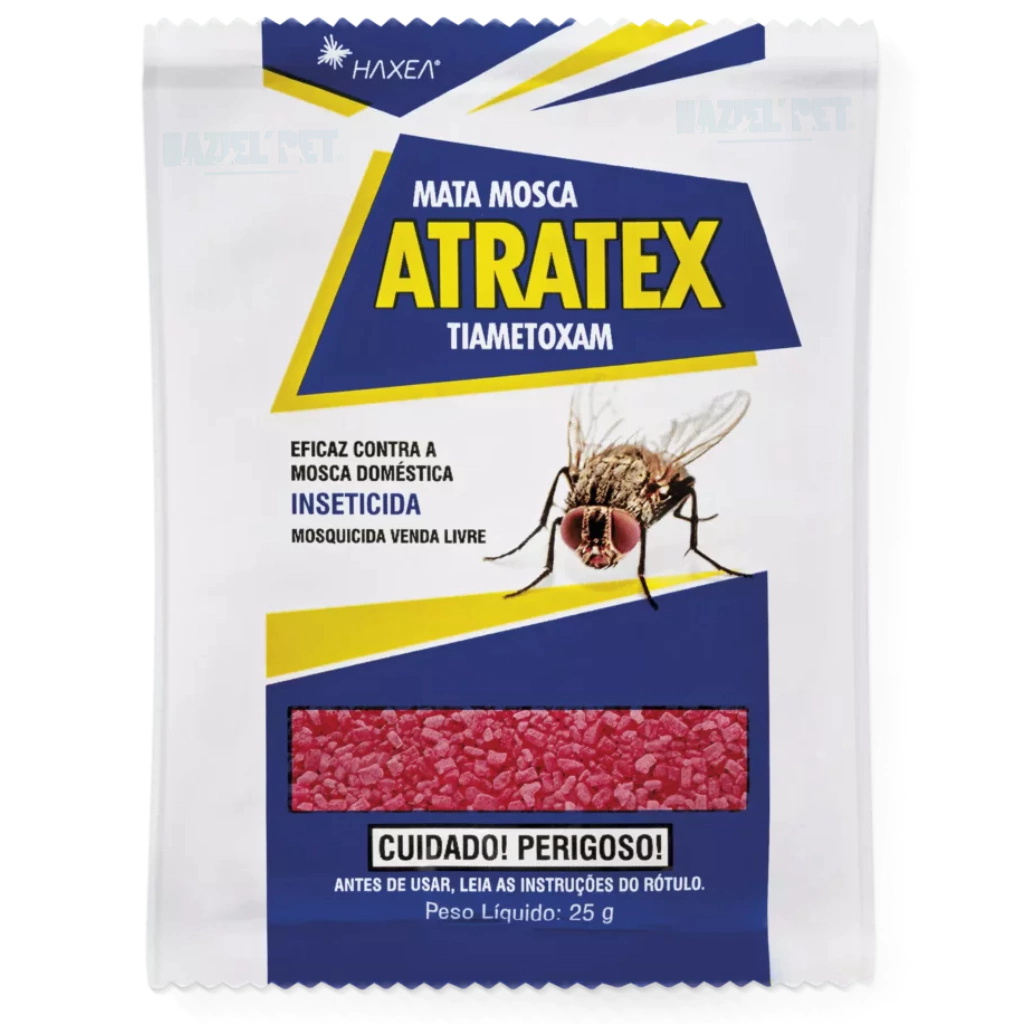 O Mata Mosca Atratex (25g)é uma isca granulada altamente atrativa, desenvolvida para o controle de moscas domésticas e rurais em locais como aviários, pocilgas, canis e áreas urbanas.