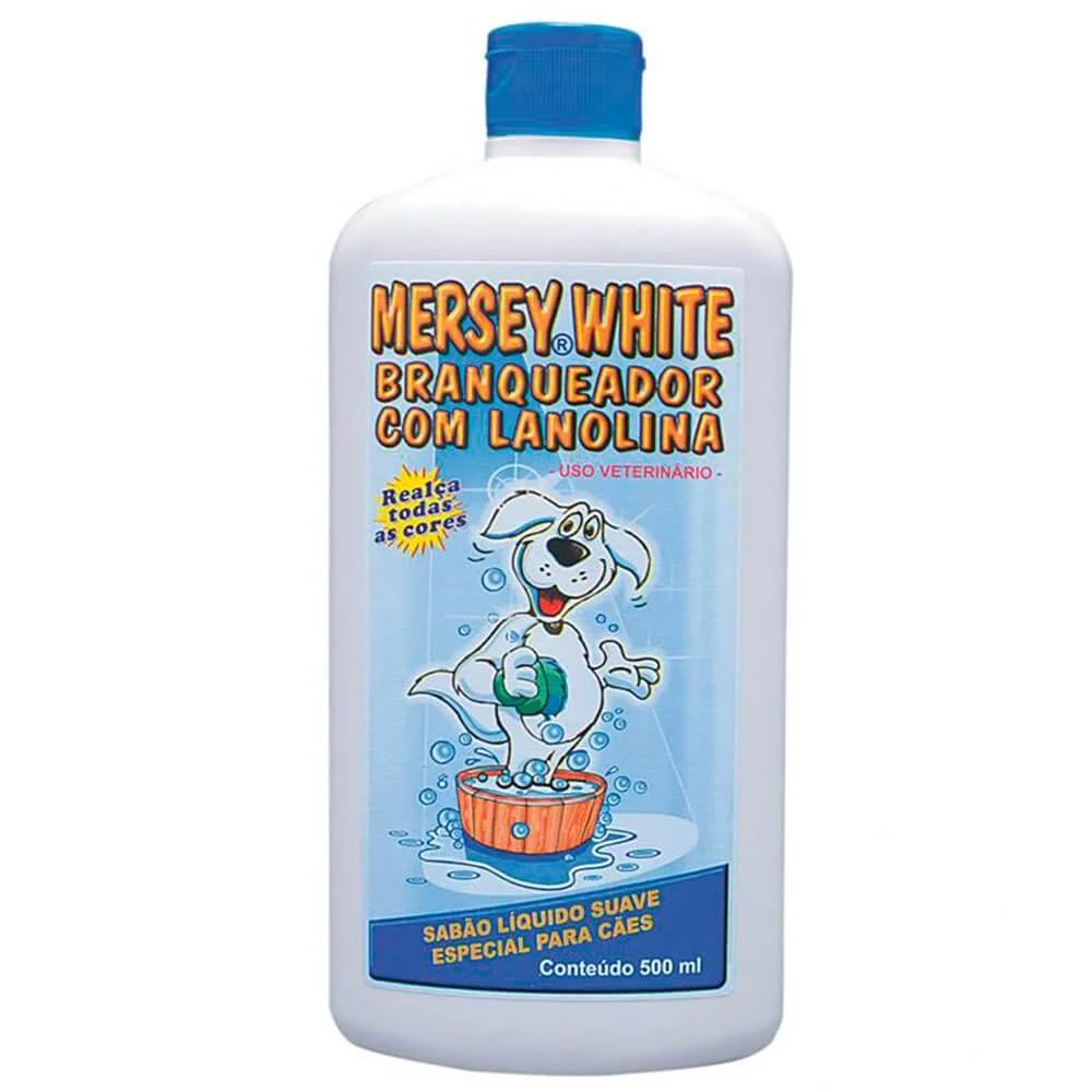 O Mersey White Branqueador é um shampoo suave para cães e gatos com branqueador óptico, que higieniza e realça as cores da pelagem, acentuando o branco e eliminando o amarelado sem descolorir, além de conter lanolina para maciez e brilho, e essência hipoalergênica para perfumar, deixando os pelos macios, brilhantes e o pet cheiroso.