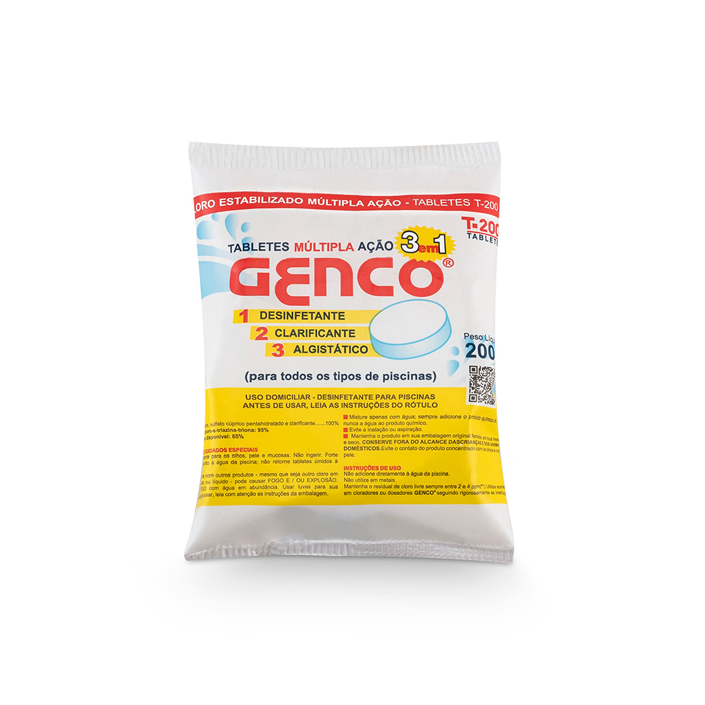 – 3 em 1, desinfetante, clarificante, e algistático.